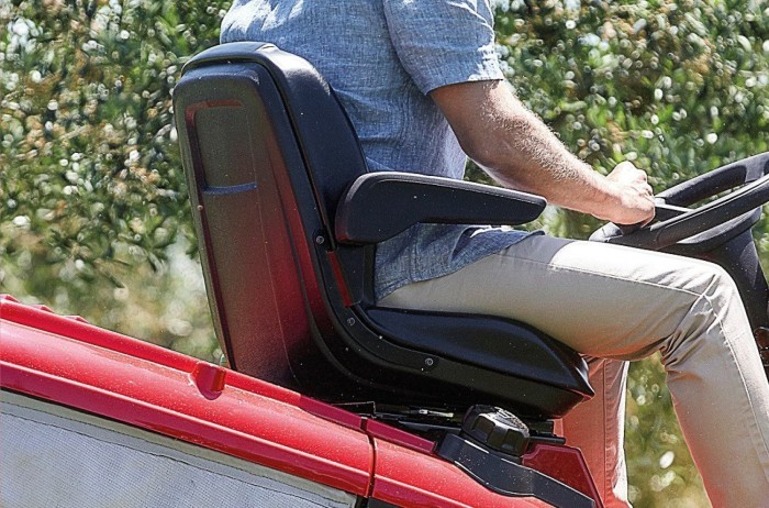 A smooth foot operated Hydrostatic transmission means both of the operators hands are on the steering wheel rather than one on a hand controller allowing for more control and more safety for the driver.