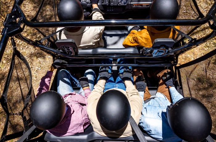 If there’s one feature that distinguishes the Pioneer 1000-6 Deluxe Crew it’s this: the full-sized crew-cab-style back seat. There’s a massive amount of leg and foot room for the rear passengers, and the centre seat in the rear is set a little forward, so you don't bump shoulders with the passengers next to you.